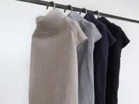 お袖風のハイネック・ウォームニット<グレージュ・グレー・ネイビー・ブラック>