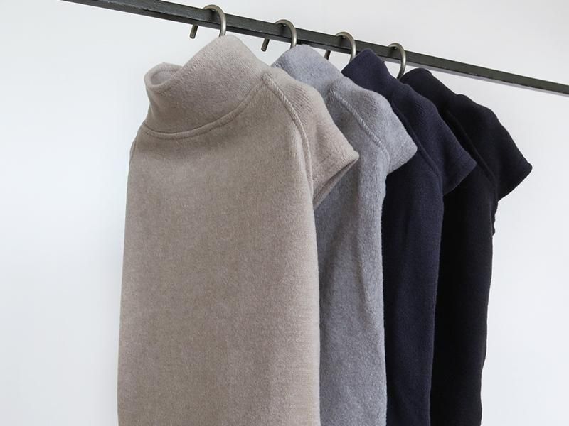 お袖風のハイネック・ウォームニット<グレージュ・グレー・ネイビー・ブラック>