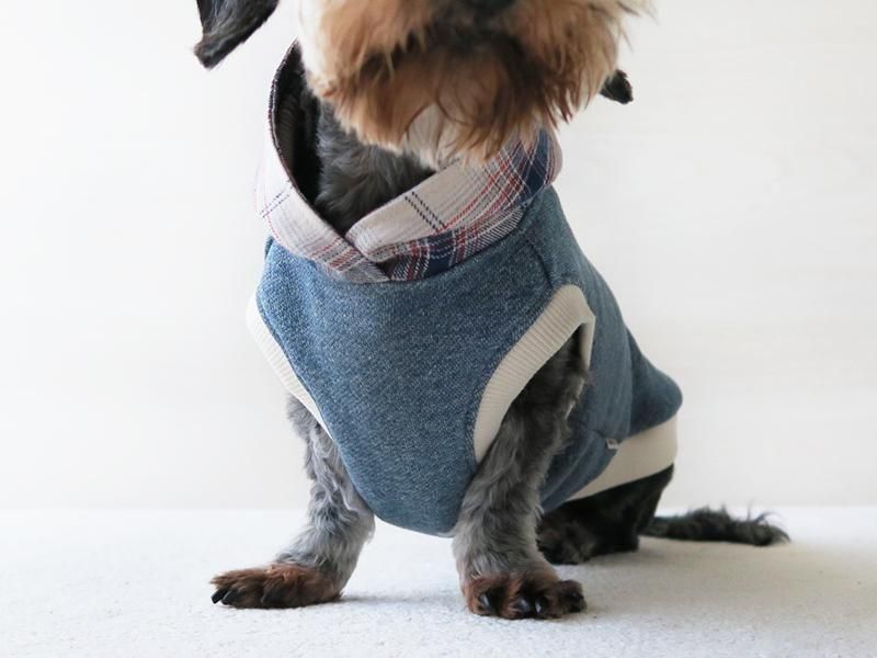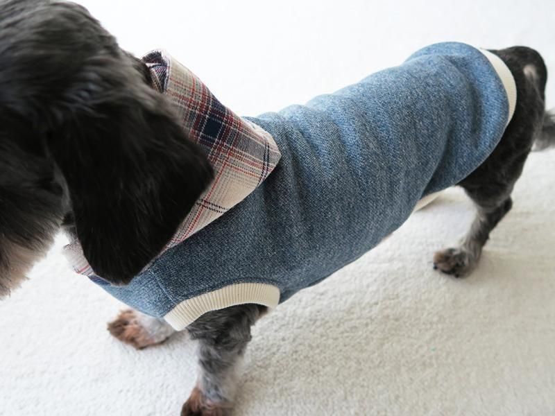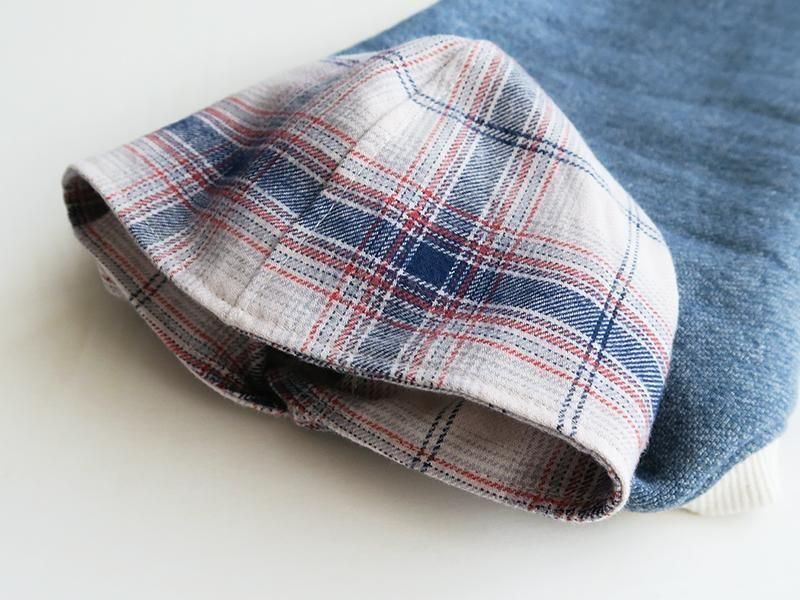 後ろ身頃と前身頃は、ブルー杢色のデニム風のニット生地です。