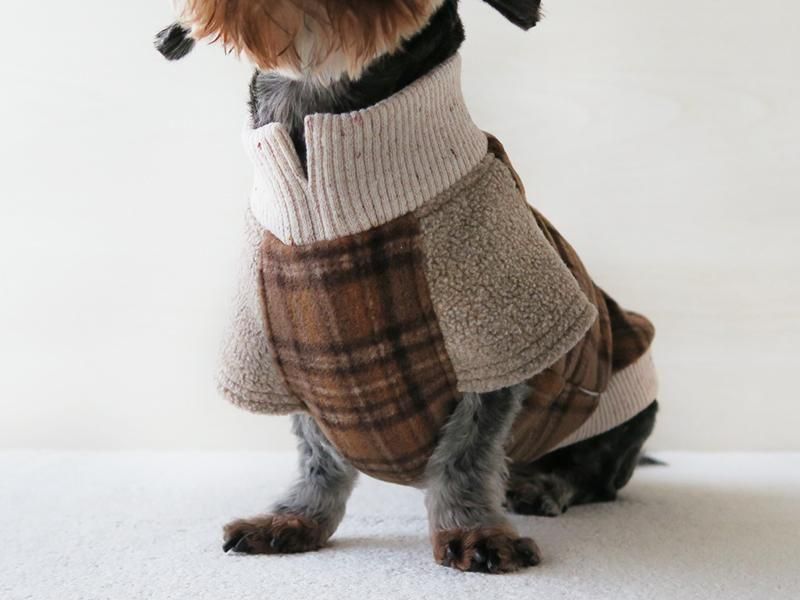 後ろ身頃と前身頃は、チェック柄のフリースニット生地です。