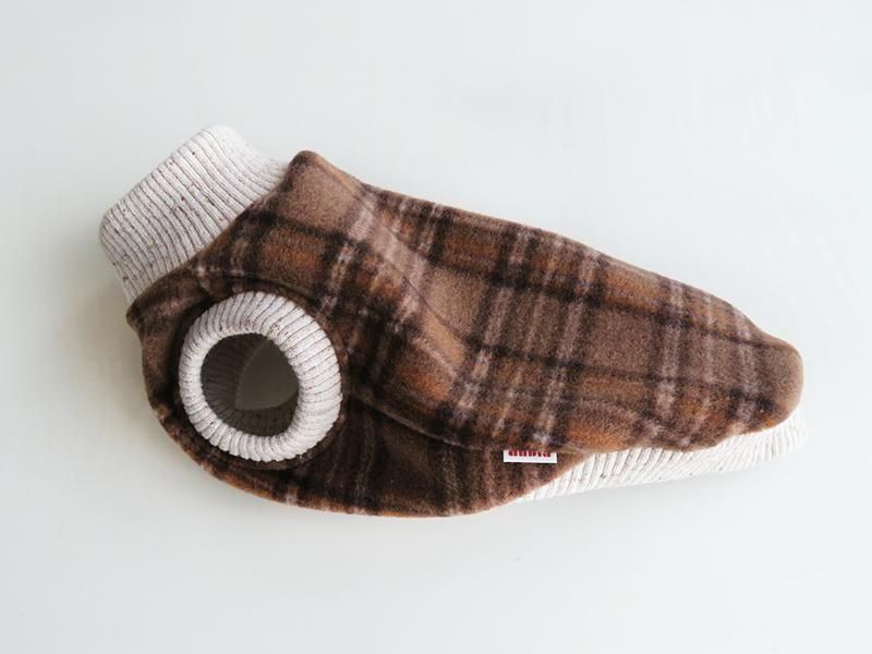 ブラウンチェック柄フリース<お袖風のハイネック>